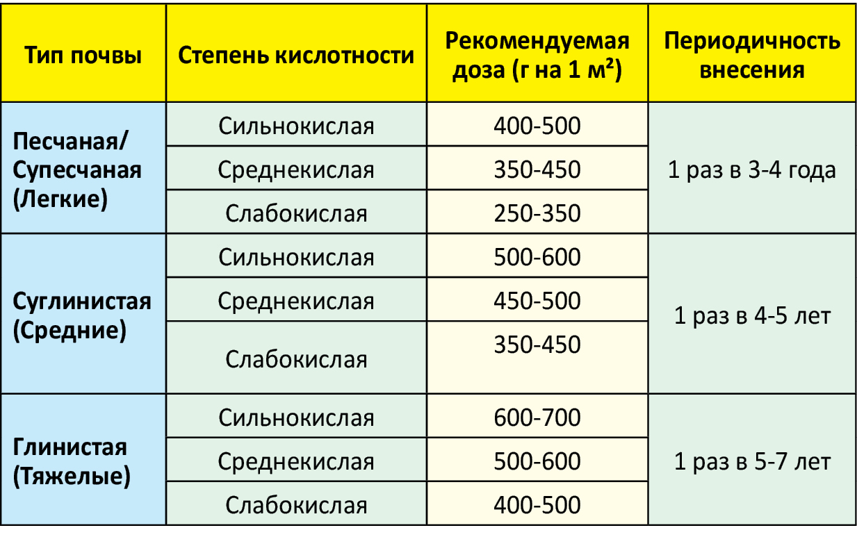 Наша таблица поможет вам точно определить норму внесения в зависимости от типа и кислотности вашего грунта.