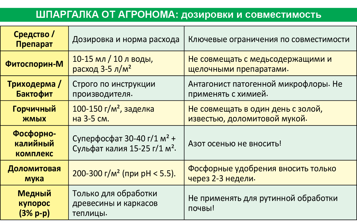 ШПАРГАЛКА ОТ АГРОНОМА: дозировки и совместимость